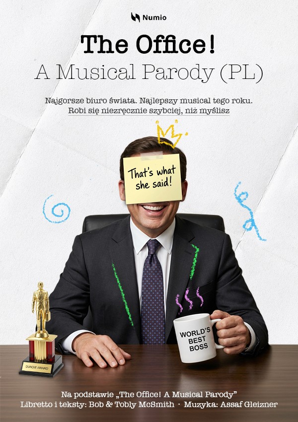 The Office Musical Parody to polska wersja off‑broadwayowskiego hitu autorstwa Boba i Tobly’ego McSmithów z muzyką Assafa Gleiznera. Numio Production zaprasza na wieczór, w którym śpiew, taniec i biurowy absurd spotykają się w jednym open space’ie.